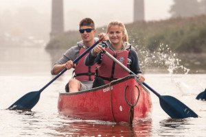 Cutting through the water in an open canoe on a water based mini adventure. Our open canoes are suitable for up to 2 adults & 2 smaller kids.
